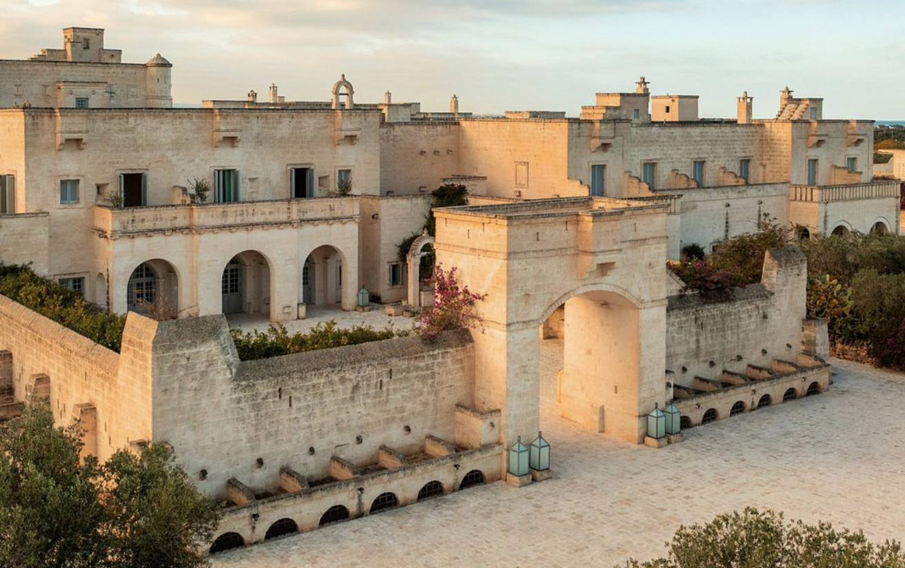 A luxury resort inspired by traditional Puglian design — peaceful, polished, and about 25 minutes from Masseria Tarsia Morisco.